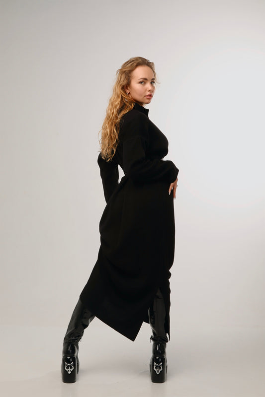 Long Black Knit Dress with Zipper - One Size | Limited Collection